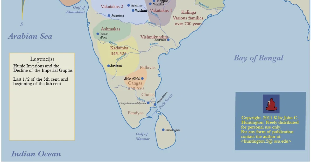 Quoi qu'il en soit, ce que nous savons, c'est que la période au cours de laquelle les Hephthalites auraient guerroyé pour le contrôle de cette région était une période de tumulte général dans le sous-continent et les régions adjacentes. À cette époque, les Sassanides étaient simultanément en guerre contre les Kouchanes (ou Saces, Kidarites ou Hephthalites, leur identité étant décrite différemment selon les sources), eux-mêmes occupés par des problèmes internes, sans compter qu'ils essayaient de conserver des territoires à l'est qui leur étaient alors disputés par les Guptas.