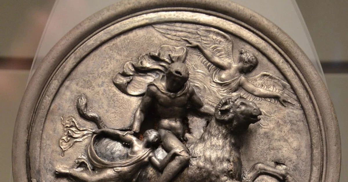 Selon le poète romain Ovide (43 av. J.-C. - 17 ap. J.-C.) dans ses Métamorphoses, Chrysomallos, le bélier à la toison d'or, était le fils de Poséidon, le dieu de la mer, et de Théophane, la fille de Bisaltès, un fils d'Hélios et de Gaïa. Théophane était une belle femme, ce qui lui valait d'être souvent entourée d'hommes. Poséidon l'emmena sur l'île de Crumissa, où il la transforma en brebis et lui-même en bélier. Après avoir couché ensemble sous la forme d'une brebis et d'un bélier naquit Chrysomallos, le bélier à la toison d'or. Le bélier fut envoyé par Néphélé, une nymphe des nuages, pour sauver ses enfants Hellé et Phrixos du sacrifice. Il porta Phrixos tout le long du chemin d'Orchomène en Béotie à Colchis, mais Hellé tomba du dos du bélier pendant le voyage et plongea dans la mer. Lorsqu'ils atteignirent la Colchide, Phrixos sacrifia le bélier et déposa sa toison d'or dans un bosquet sacré pour Arès. Cette toison d'or devint alors l'objet que Jason et ses Argonautes furent envoyés récupérer.