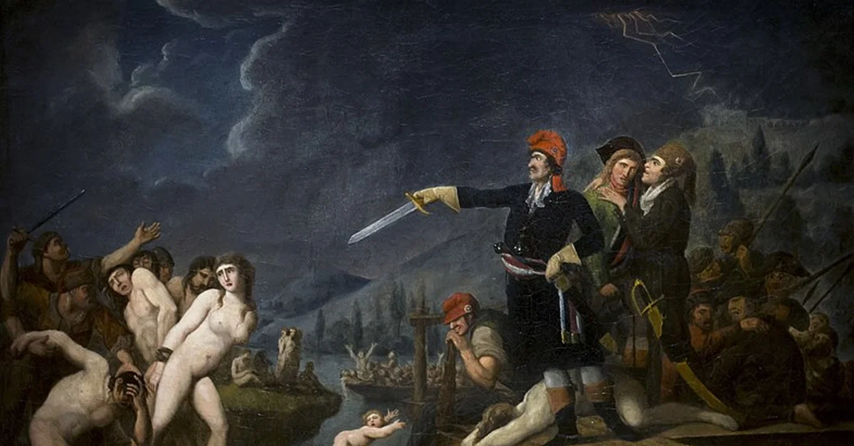 Alors que la République ravageait la Vendée pour la punir de sa trahison, des milliers de paysans vendéens fuirent la zone de guerre, à la recherche d'un sanctuaire. Beaucoup d'entre eux arrivèrent aux portes de Nantes, espérant qu'en tant que non-combattants, ils trouveraient refuge. Au lieu de cela, ils furent mis aux fers et jetés dans les prisons aux côtés de leurs pères et frères qui avaient été capturés après la bataille et qui croupissaient depuis lors en tant que prisonniers de guerre. Le 17 septembre 1793, le Comité de salut public, quasi dictatorial, promulgua la loi des suspects, qui exigeait l'arrestation de tous les "suspects" contre-révolutionnaires dans toute la France, un terme si vague qu'il pouvait s'appliquer à n'importe qui. À Nantes et dans les terres environnantes, ceux qui avaient aidé les rebelles vendéens furent arrêtés, tout comme les prêtres et les religieuses réfractaires, et ceux qui étaient soupçonnés d'entretenir des sympathies royalistes ou catholiques. En novembre, les prisons de Nantes étaient pleines à craquer, avec environ 10 000 personnes entassées dans de petites cellules sordides. C'était un nombre stupéfiant, équivalent à plus d'un dixième de la population générale de la ville.