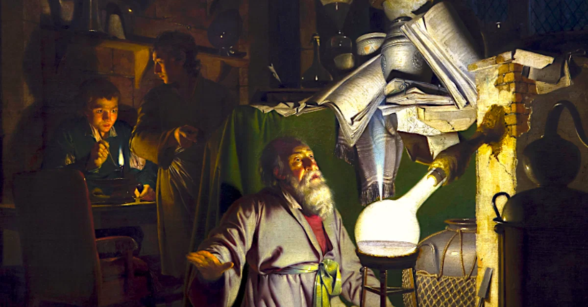L'alchimie peut sembler farfelue aujourd'hui, mais elle n'a pas toujours été considérée comme telle, et ce pour de bonnes raisons. Dans l'Antiquité, des artisans étaient capables de créer des matériaux qui ressemblaient à de l'or, de l'argent, des pierres précieuses et de la pourpre, mais qui n'en étaient pas, notamment dans l'Égypte hellénistique et romaine. L'oxydation et la réduction dans les fours à poterie de l'Antiquité, la teinture des textiles à l'aide de matières végétales ou animales, l'enrichissement de certains métaux pour les rendre plus résistants ou la création d'alliages dans le four du forgeron sont autant de procédés par lesquels l'humanité a littéralement modifié la nature. En outre, Mère Nature elle-même transformait constamment les matériaux d'une forme à une autre, comme la fonte de la glace en eau, la combustion du bois en cendres, l'évaporation d'un liquide en vapeur ou la solidification de la lave volcanique. La nature possède de merveilleuses substances transformatrices qui peuvent être facilement observées par tout un chacun. L'alcool, par exemple, a un effet étrange sur le corps lorsqu'il est consommé en grande quantité. L'alcool s'évapore rapidement, il peut dissoudre certaines matières comme la résine, mais, à l'inverse, il peut aussi être utilisé pour conserver d'autres matières organiques, et il peut même être brûlé.