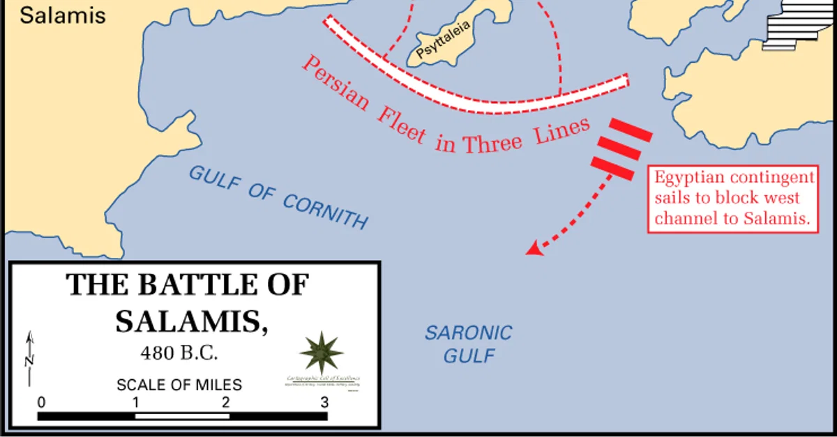 La bataille de Salamine fut une bataille navale entre les forces grecques et perses dans le golfe Saronique, en Grèce, en septembre 480 av. JC. Les Grecs venaient de perdre la bataille des Thermopyles et de faire match nul à la bataille navale du cap Artémision, toutes deux en août 480 av. JC, alors que le roi Xerxès Ier (r. 486-465 av. JC) et son armée perse saccageaient tout sur leur passage. Les Grecs remportèrent la bataille de Salamine, l'une des plus grandes et des plus importantes victoires militaires de l'Antiquité. En surmontant la supériorité numérique grâce à des tactiques audacieuses et à une détermination sans faille, les forces grecques alliées gagnèrent une liberté qui permit une période d'effort artistique et culturel sans précédent qui constitua les fondements de la culture occidentale pendant des millénaires.