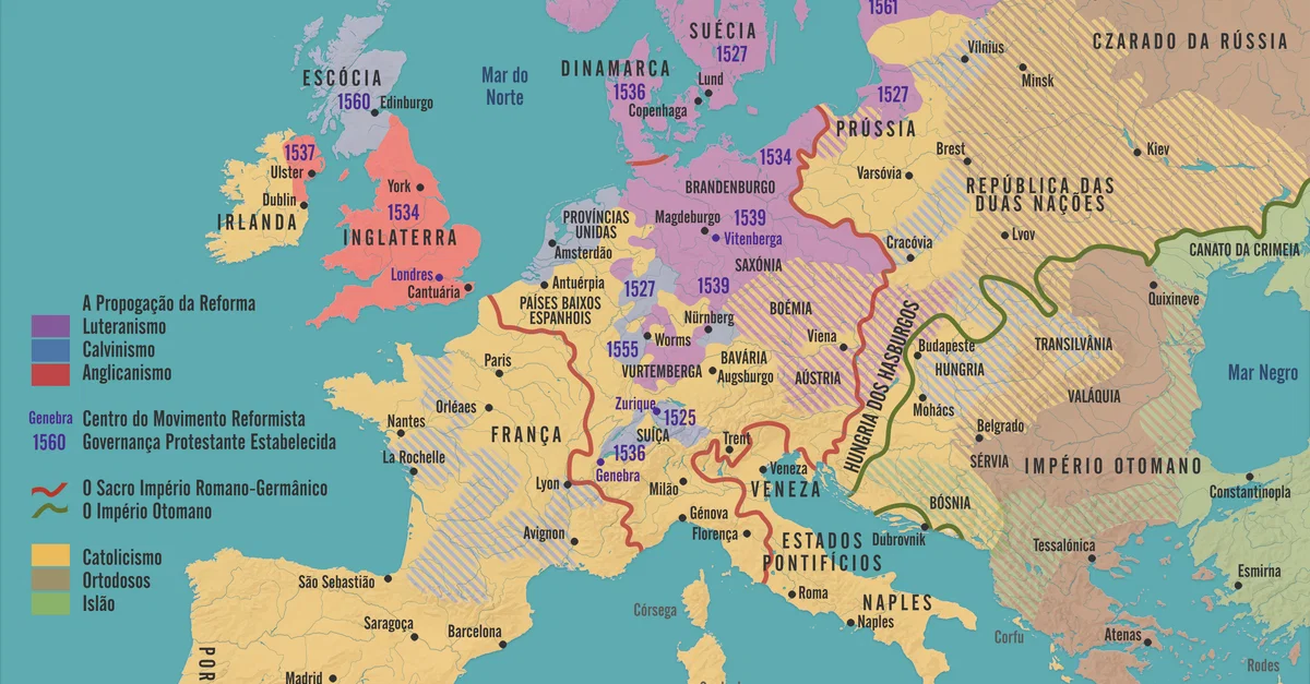A Reforma Protestante (1517-1648) se refere a uma ampla revolta religiosa, cultural e social na Europa do século XVI, que quebrou o monopólio da Igreja medieval, permitindo o desenvolvimento de interpretações pessoais da mensagem cristã e levando ao desenvolvimento dos Estados-nação modernos. É considerado um dos eventos mais importantes na história ocidental.