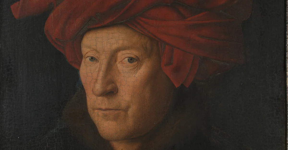 এই ত্রয়ীর প্রথমটিকে কিছু শিল্প বিশেষজ্ঞ একটি স্ব-প্রতিকৃতি হিসাবে বিবেচনা করেন। 1433 খ্রিস্টাব্দে নির্মিত, এটি ভ্যান আইককে একটি বিস্তৃত লাল চ্যাপেরন পরা দেখায় , তারপরে উচ্চাকাঙ্ক্ষী ক্লাসের জন্য ফ্যাশনেবল হেডগিয়ার। কাজটি এখনও তার মূল ফ্রেমে রয়েছে, মজার বিষয় হল, একমাত্র বেঁচে থাকা মূল ভ্যান আইক ফ্রেম যা সোনার করা হয়েছিল। ফ্রেমের শীর্ষে গ্রিক অক্ষরে তার নীতিবাক্য খোদাই করা হয়েছে এবং ফ্রেমের নীচে আরেকটি লেখা রয়েছে, এবার ল্যাটিন ভাষায়, "জান ভ্যান আইক আমাকে তৈরি করেছিলেন, 1433, 21 অক্টোবর"। শিল্পী 1439 খ্রিস্টাব্দে তার স্ত্রী মার্গারেটের একটি প্রতিকৃতিও এঁকেছিলেন, যা এখন ব্রুজেসের গ্রোনিনজেন যাদুঘরে রয়েছে।