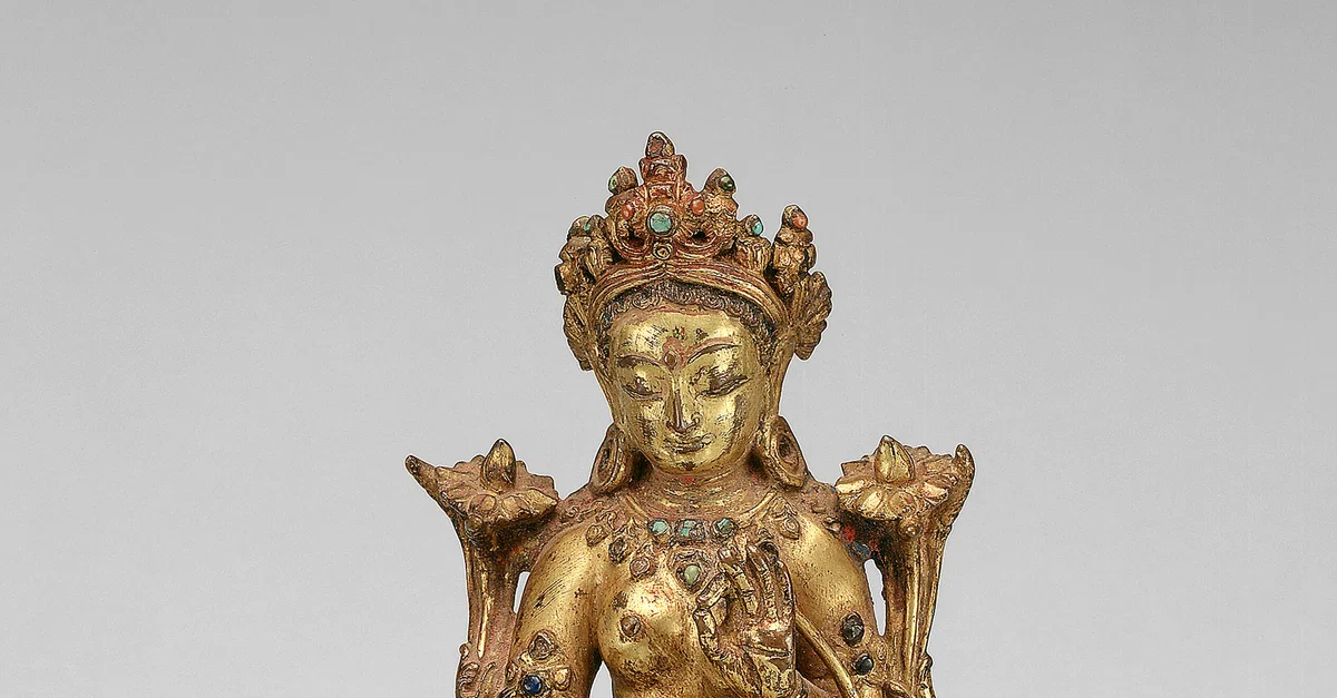 তিব্বতী বৌদ্ধধর্মে, তিনি চেনরেজিগ নামে পরিচিত, যিনি একটি পর্বতের চূড়া থেকে পৃথিবীর দিকে তাকিয়ে দেখেছেন কিভাবে মানুষ অজ্ঞতার মাধ্যমে অবিরাম কষ্টভোগ করছে, যা তাদের নিজেদের ভয়ের মধ্যে আটকে রেখেছে এবং তাদের পুনর্জন্ম ও মৃত্যুর চক্রে আবদ্ধ করেছে (সংসার) যার উপর তারা জাগ্রত না হলে অনন্তকাল ধরে কষ্ট ভোগ করবে। তাঁর অশ্রু তাঁর পায়ের কাছে একটি পুকুর তৈরি করেছিল যা একটি হ্রদে প্রসারিত হয়েছিল এবং এর কেন্দ্রে একটি পদ্ম উপস্থিত হয়েছিল এবং তারপরে খোলা হয়েছিল, তারাকে তার সম্পূর্ণ রূপ এবং শক্তিতে প্রকাশ করেছিল। তাই তাকে অবলোকিতেশ্বর/চেনরেজিগের মহিলা প্রতিমূর্তি হিসাবে বিবেচনা করা হয়, যিনি নিজেকে সমবেদনা এবং সহানুভূতিশীল জ্ঞানের মূর্ত প্রতীক হিসাবে বোঝা যায়।