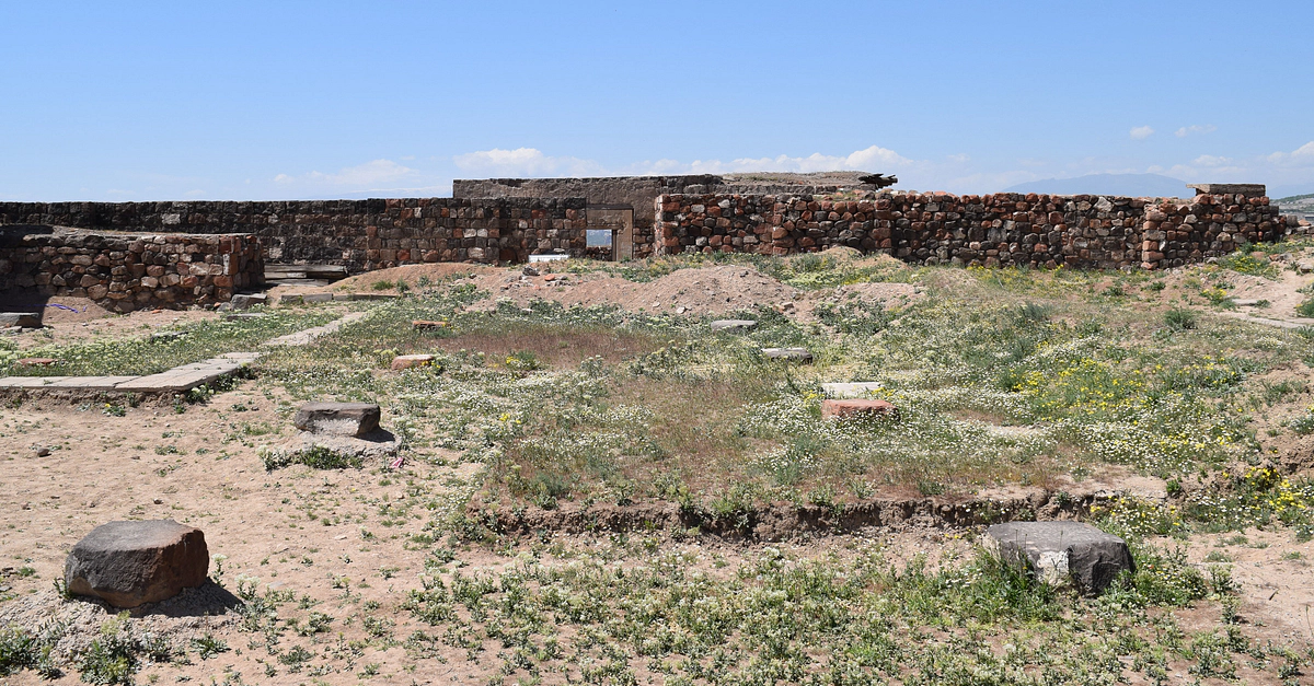 El palacio real de Erebuni era especialmente espléndido si se tienen en cuenta los restos arqueológicos que se han descubierto desde entonces. Los arqueólogos han establecido que los persas hicieron alteraciones y reconstruyeron partes del complejo administrativo en el siglo VI a.C. Originalmente, contenía un gran salón decorado con frescos de figuras humanas y escenas naturales con pinturas de animales salvajes en tonos vivos. Después del reinado de Sardury II (que reinó de 764-735 a.C.), los arqueólogos sospechan que la gran sala del palacio real se convirtió en una bodega, llena de enormes jarras de agua y vino que podían contener hasta 40.000 litros (10.567 galones) de líquido. Los arqueólogos también han descubierto cinco pilares de basalto en la sección suroriental de la fortaleza que contienen inscripciones que datan del reinado de Arguishti I. Se cree que hubo un fuerte terremoto durante el reinado de Rusa II que destruyó partes de la ciudad y el palacio.