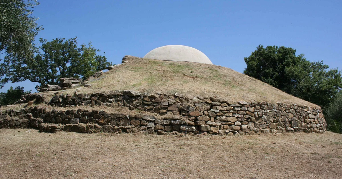 Las tumbas de túmulo continuaron construyéndose durante el siglo VII a.C., pero a una escala más grande, algunas con base de piedra elevada de 70 metros de diámetro y con múltiples cámaras. Están revestidas con losas de piedra y rodeadas por un número de tumbas en zanja mas pequeñas. Una de tales tumbas, el túmulo de Pietrera, tiene una cámara sencilla con un techo en voladizo sostenido por una única columna. Contenía ocho figuras femeninas y masculinas, casi de tamaño natural, todas de pie, talladas en piedra caliza.