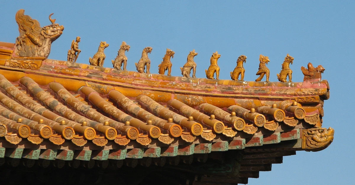 Para distribuir el peso del tejado sobre los postes de madera que lo soportaban y permitir que se extendiera más allá de la superficie del edificio en sí, se desarrolló el dougong, un soporte que conecta la parte superior del poste con la viga horizontal del tejado. Es probable que el diseño de los tejados que sobresalen de los muros del edificio, rasgo característico de la arquitectura asiática, tuviera como objetivo proteger las columnas de madera y sus bases de los daños causados por la lluvia. En un deseo de crear un espacio más abierto en el interior del edificio, se utilizaron menos columnas y la estructura del tejado se intrincó para distribuir aún más el peso, lo que se logró combinando soportes con vigas transversales y en voladizo bajo los travesaños del tejado. Además, en el exterior, los edificios chinos lucían colores brillantes como pintura bermellón en pilares y balaustradas, amarillo para las tejas vidriadas y verde para los elementos decorativos como las ménsulas bajo los aleros.