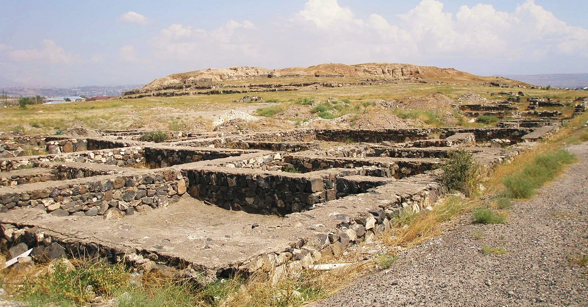 La civilización urartiana floreció entre el siglo IX y principios del VI a.C. en la antigua Armenia, el este de Turquía y el noroeste de Irán. La ciudad fortificada de Teishebaini, situada en la llanura de Ararat, fue fundada por el rey Rusa II (que reinó en torno a 685-645 a.C.) y recibió su nombre de Teisheba, el dios urartiano de las tormentas y los truenos. Hoy en día, el yacimiento se llama Karmir-Blur y se encuentra cerca de la actual capital de Armenia, Ereván.