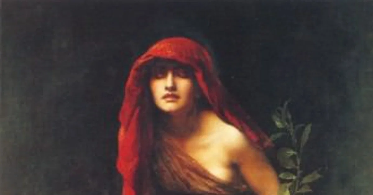 El oráculo de Delfos, también conocido como pitia, era una sacerdotisa que pronunciaba sus oráculos en Pito, el santuario de los habitantes de Delfos consagrado al dios griego Apolo. La sacerdotisa pitia gozaba de gran prestigio, pues se creía que canalizaba las profecías del mismísimo Apolo mientras se encontraba sumida en un trance onírico. En un primer momento, solo se consultaba al dios una vez al año, pero cuando las consultas alcanzaron el punto álgido de popularidad, llegaron a ocupar el cargo de pitia hasta tres sacerdotisas a la vez. El santuario de Delfos se construyó en el siglo VIII a.C. y la última profecía se pronunció en torno al 393 d.C., después de que el emperador romano Teodosio ordenara la clausura de todos los santuarios paganos.