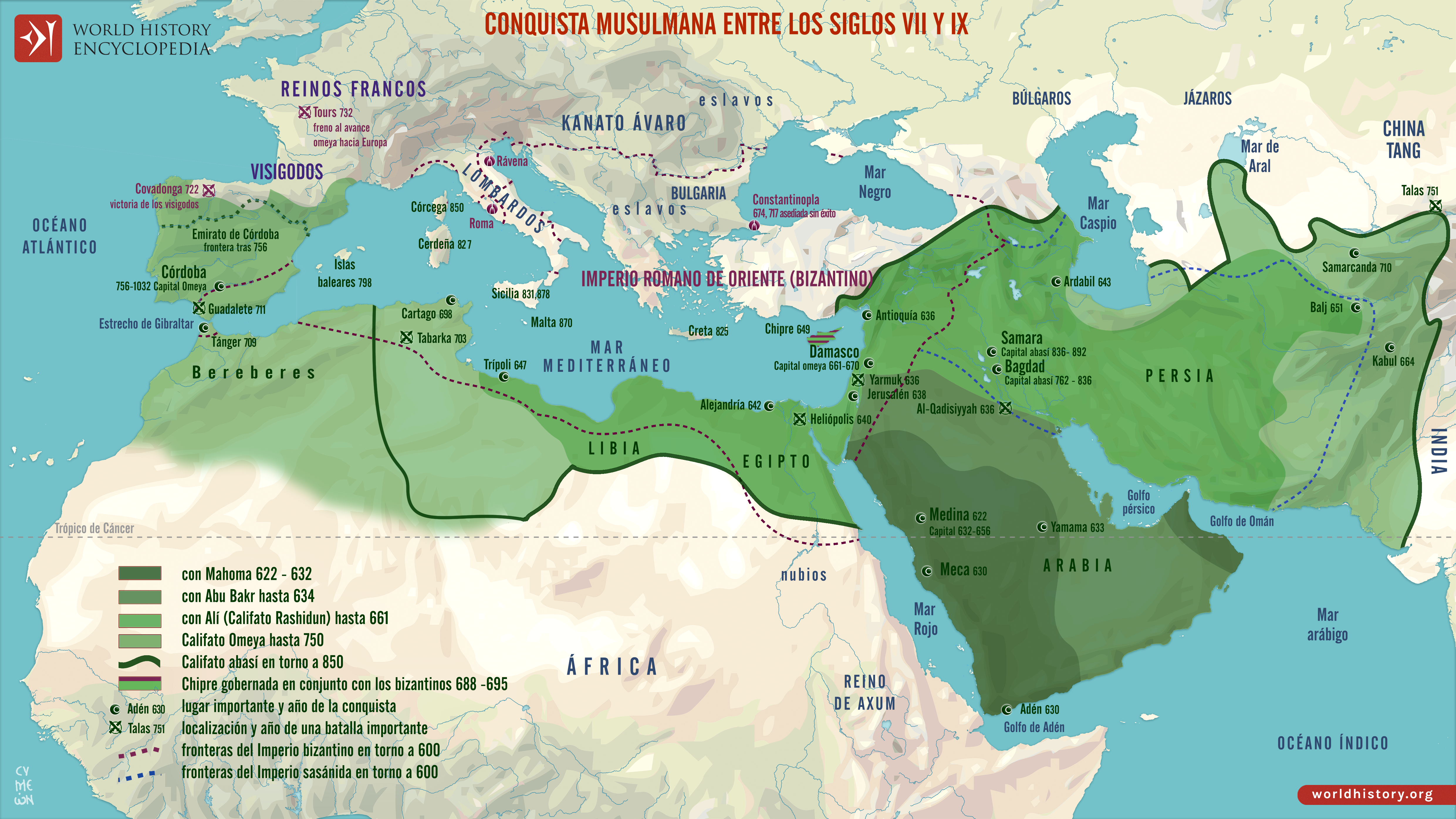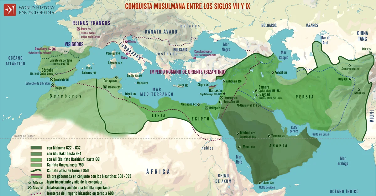 Netchev, S. (2026, enero 27). Mapa de las conquistas musulmanas entre los siglos VII y IX. (R. Baranda, Traductor). World History Encyclopedia. https://www.worldhistory.org/trans/es/3-14212/mapa-de-las-conquistas-musulmanas-entre-los-siglos/
