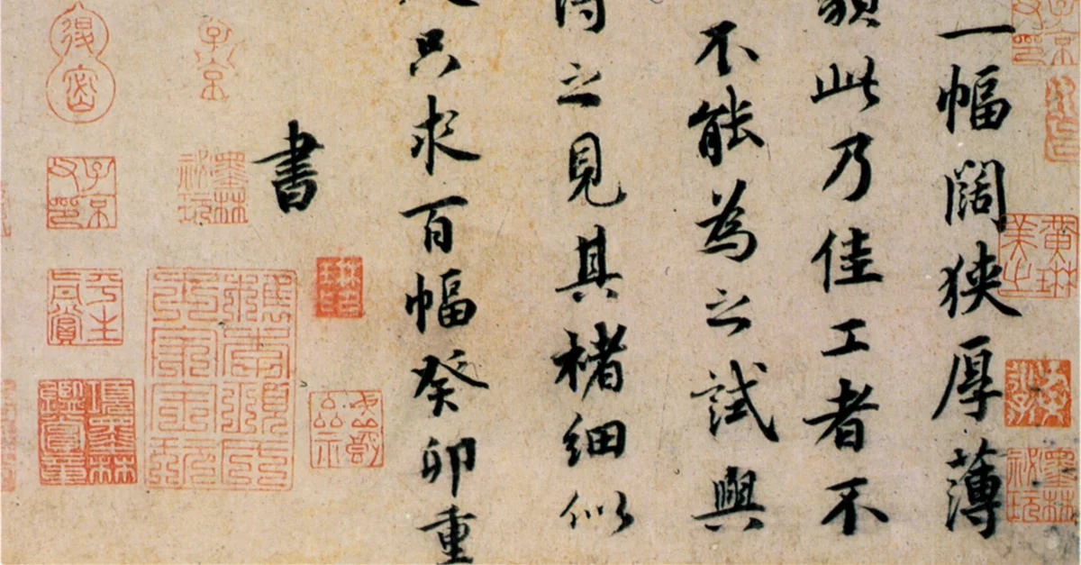 صاحبین و مجموعه داران بعدی حتی ممکن بود نوشته های بیشتری را به اثر اصلی اضافه کرده و یا تکه ای کاغذ و یا ابریشم را برای نوشته ها به آن اثر وصل کنند. از قرن ۷ میلادی به بعد، صاحبان آثار بر روی آنها مهر شخصی خود را با جوهر قرمز اضافه می کردند و برای مثال اگر اثر از فردی به فرد دیگر انتقال می یافت، صاحب جدید نیز مهر خود را به جهت حفظ سابقه ی مالکیت به آن اضافه می کرد. در برخی موارد سابقه ی مالکیت یک اثر را می توان تا هزاران سال پیش ردیابی کرد. به نظر می رسد که نقاشی های چینی بصورت پیوسته در طول زمان با خوشنویسی هایی زیبا تزئین می شدند.