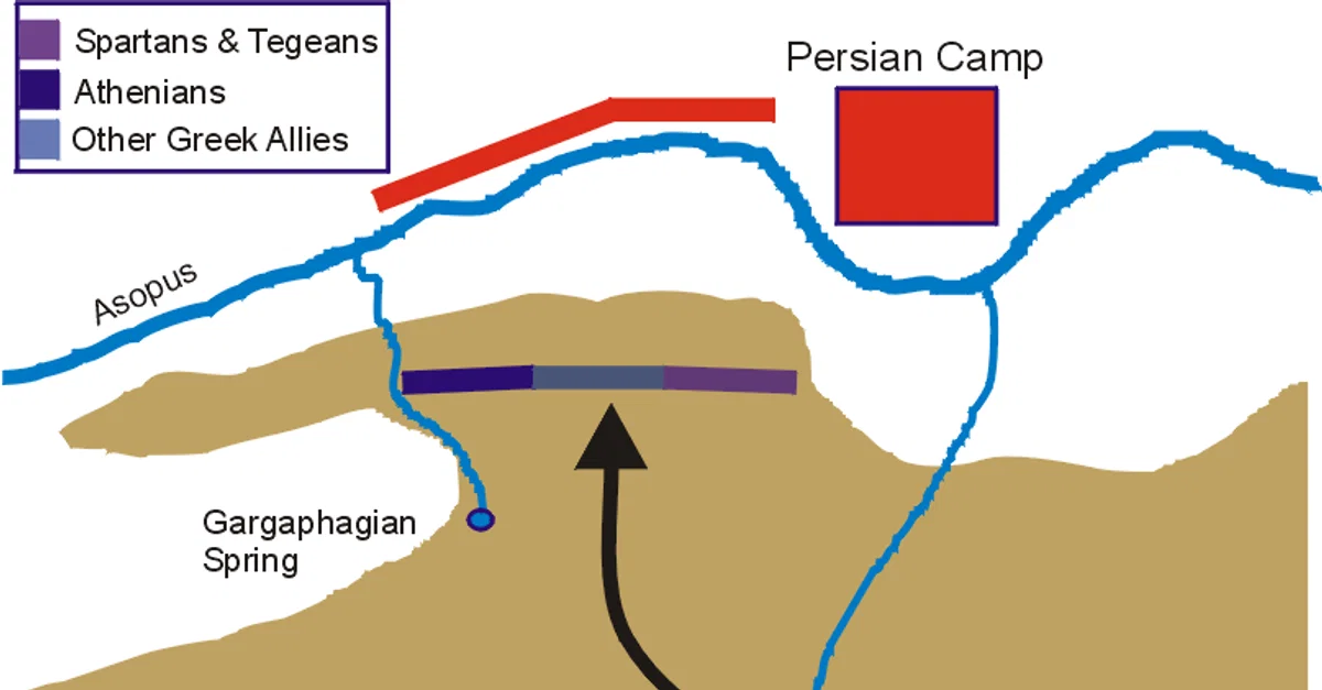 Au printemps 479 av. J.-C., la flotte perse se regroupa à Samos, tandis qu'en juin, Mardonios quitta ses quartiers d'hiver en Thessalie et envahit une nouvelle fois l'Attique avant de se retirer pour tenir une ligne en Béotie, au nord du fleuve Asopos, où il construisit un grand camp fortifié.