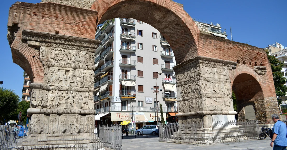 L'arc de triomphe, connu aujourd'hui sous le nom de Kamara, fut construit vers 305 de notre ère et constitue toujours un point de repère important de la ville. Il comportait à l'origine huit portes et était surmonté d'un dôme. Aujourd'hui, seules la grande porte centrale (9,7 mètres de large) et une porte secondaire (4,85 mètres de large) subsistent. Ses piliers de marbre sont ornés de sculptures en relief représentant des scènes des escapades militaires de Galère contre les Perses. Les piliers sont reliés par une arche de brique élancée et devaient à l'origine comporter des niches surmontées de statues.