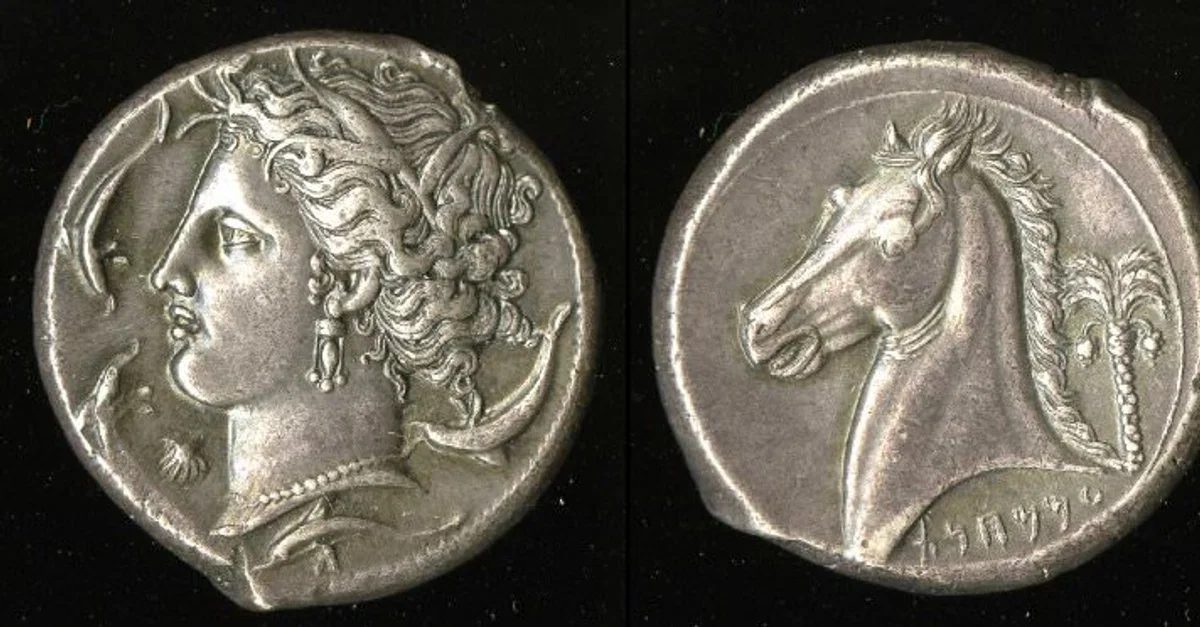 Dans le monde antique, les pièces de monnaie étaient un moyen important de transmettre des messages politiques et culturels en présentant les têtes des dirigeants et des personnages de la mythologie locale. Carthage ne dérogeait pas à la règle et ses pièces représentaient des personnages aussi importants que Didon (alias Elissa, qui se distinguait par son doux bonnet phrygien avec un long cou et des cache-oreilles), fondatrice légendaire de Carthage, le dieu Melqart (portant généralement une coiffe en peau de lion et/ou une massue), les déesses Tanit, Astarté et, plus rarement, Isis, ainsi que les grands généraux Hamilcar Barca et Hannibal. D'autres motifs populaires et immédiatement reconnaissables étaient la proue d'un navire, le palmier, le cheval (juste la tête ou entier), le lion et l'éléphant de guerre.