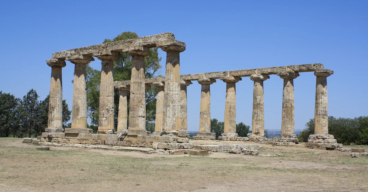 Métaponte, située sur la côte sud de la Basilicate, en Italie, était une colonie achéenne fondée à la fin du VIIIe siècle avant notre ère. Prospère grâce à l'agriculture et au commerce, la ville devint l'une des colonies les plus riches de Magna Graecia. Aujourd'hui, la meilleure preuve de l'importance de Métaponte dans l'Antiquité est le temple d'Héra du VIe siècle AEC, avec 15 de ses colonnes doriques encore intactes.