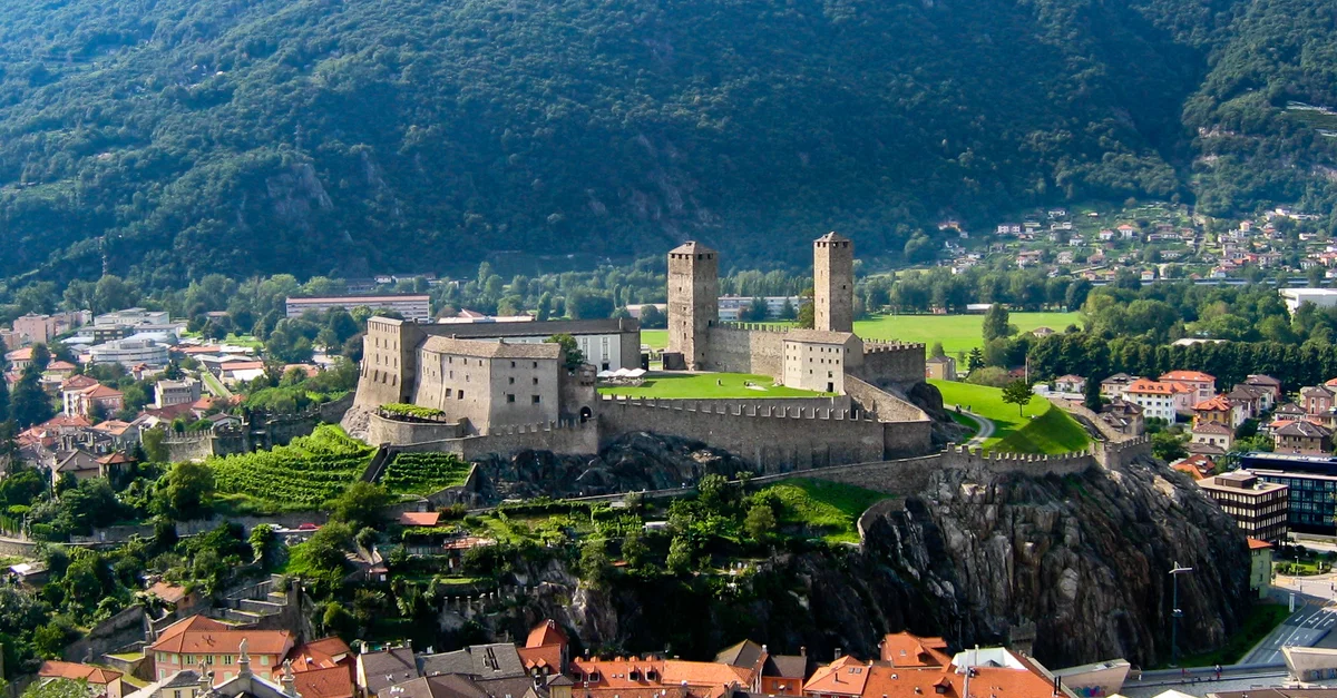 Bellinzone est située à l'est du fleuve Tessin, au pied des Alpes lépontines. Au sud de Bellinzone se trouvent la fertile vallée du Pô et la ville de Milan, tandis qu'au nord se trouvent les cols alpins du Saint-Gothard, du Nufenen, du Lukmanier et du Saint-Bernard. Le Tessin se jette dans le lac Majeur, permettant ainsi d'accéder à ce qui est aujourd'hui l'Italie. La topographie de la ville est parfaitement adaptée à la construction de forteresses stratégiques, car une colline rocheuse entoure tout le flanc est de la vallée dans laquelle se trouve Bellinzone.