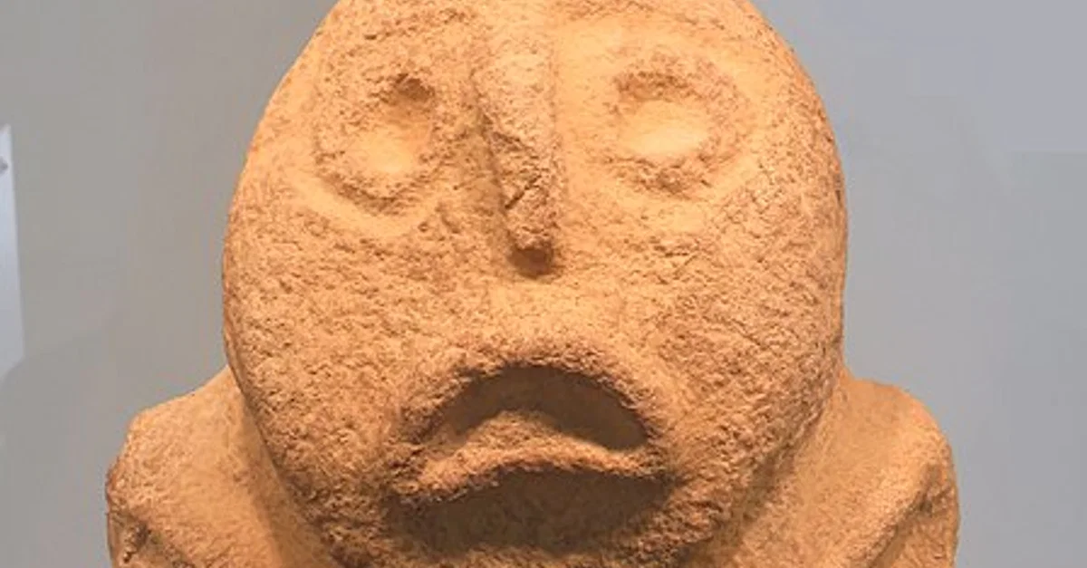 L'Ancêtre - Rodonacelnik - est un portrait monumental aux dimensions surnaturelles. Il est réalisé en grès quartzique avec des traces de pigments rouges sur le cou et autour des yeux. Les dimensions de la sculpture sont de 52 x 33 cm.
