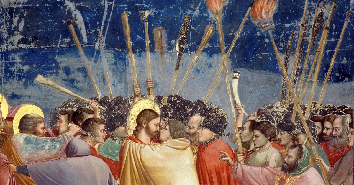 Le panneau représentant la trahison de Judas, appelé le « Baiser de Judas », est un autre chef-d’œuvre d’une intense vivacité résumée ici par l’historien de l’art J. T. Paoletti :