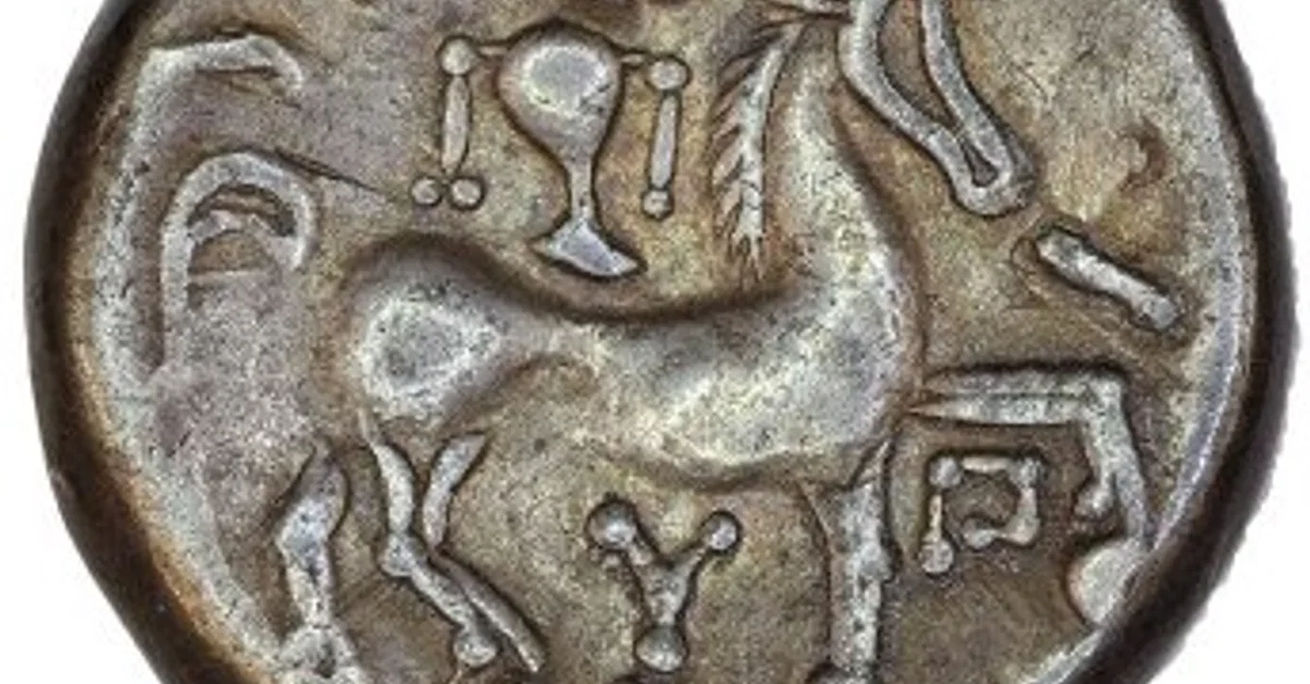 Les pièces de monnaie des anciens Celtes, frappées du début du 3e siècle av. JC au 1er siècle ap. JC, ont d'abord imité les pièces grecques, puis romaines. Les graveurs celtes ont ensuite rapidement développé leur propre style, créant des pièces distinctives avec des représentations de chevaux stylisés, des formes abstraites et des portraits de chefs celtes. Ne faisant pas partie d'une entité politique et économique plus large comme l'Empire romain, les pièces celtiques d'or, d'argent et de bronze étaient rarement utilisées pour le commerce interrégional, mais elles servaient plutôt à acheter et à échanger des biens localement et à diffuser des images des souverains, des tribus et de l'ancienne religion celtique. Enfin, les pièces étaient souvent enterrées en grandes quantités dans le cadre de rituels votifs.