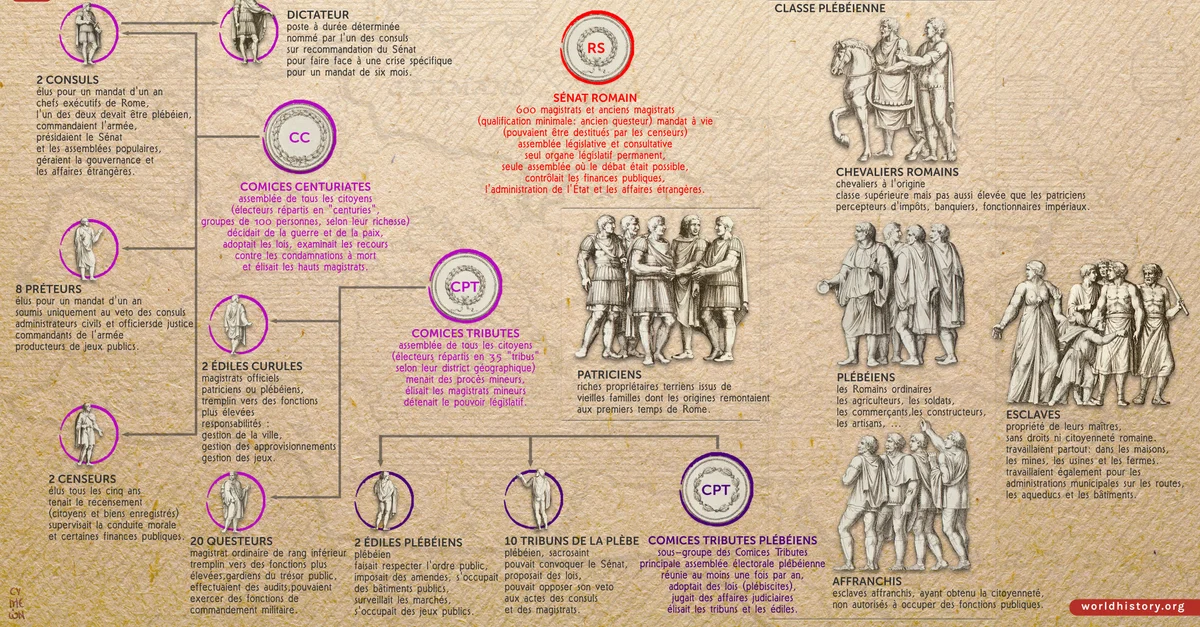 - le concilium plebis, chargé de promulguer les lois et de représenter les intérêts de la plèbe.