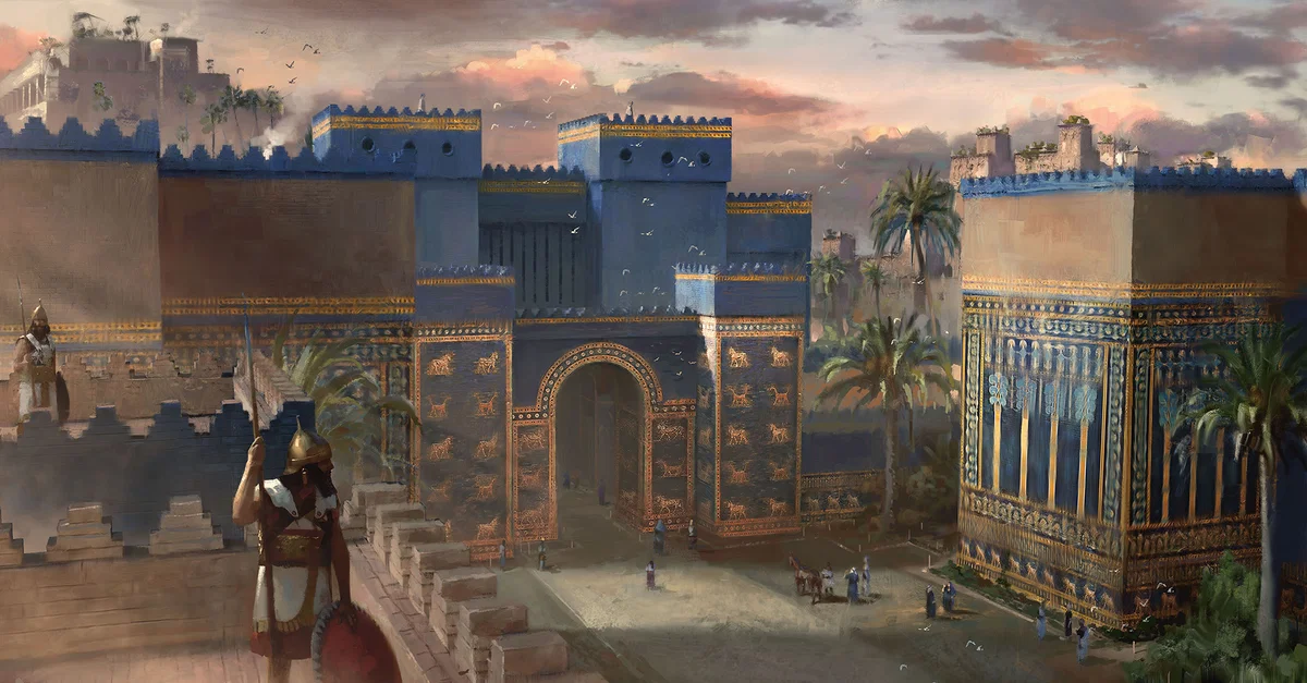 La porte d'Ishtar fut construite par le roi babylonien Nabuchodonosor II vers 575 avant notre ère. C'était la huitième porte de la ville de Babylone (dans l'actuel Iraq) et l'entrée principale de la ville. La porte d'Ishtar faisait partie du plan de Nabuchodonosor visant à embellir la capitale de son empire. Au cours de la première moitié du VIe siècle avant J.-C., il restaura également le temple de Marduk et construisit la célèbre merveille qu'étaient les jardins suspendus dans le cadre de ce plan. La magnificence de la porte d'Ishtar était si connue qu'elle figurait sur la liste initiale des sept merveilles du monde antique. Cependant, elle fut remplacée plus tard par le Phare d'Alexandrie, mais certains auteurs (Antipater de Sidon et Callimaque de Cyrène) écrivirentt que les "Portes d'Ishtar" et les "Murs de Babylone" devaient toujours être considérés comme faisant partie des merveilles.