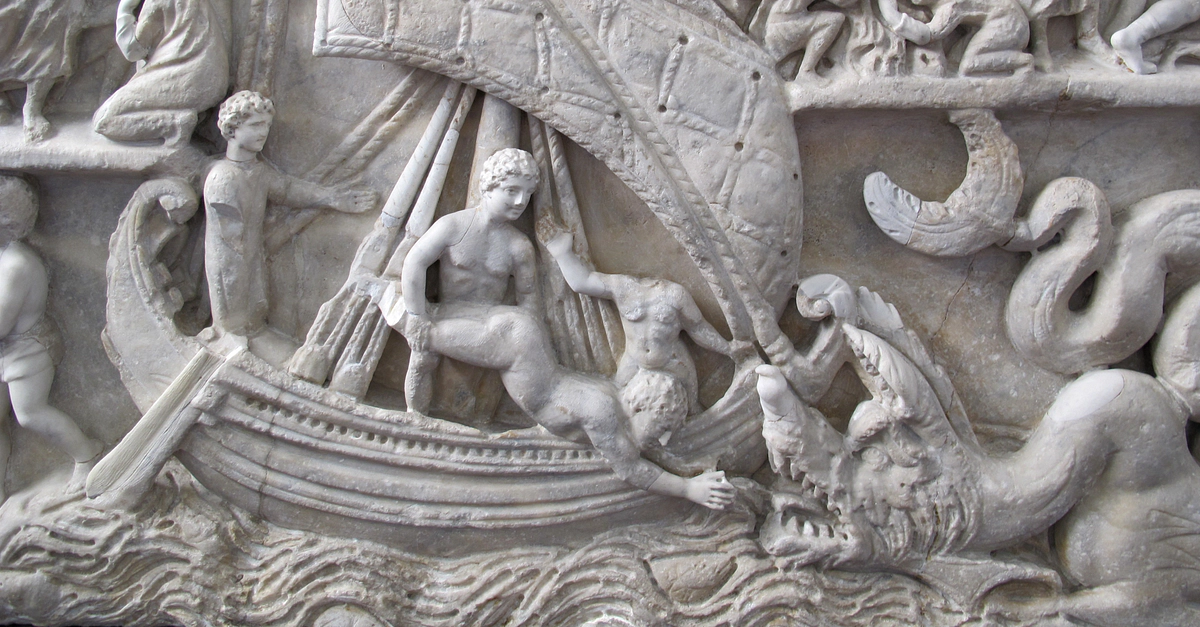 Après que Jonas eut refusé d'obéir à l'appel de Dieu d'aller à Ninive, Dieu lança sur la mer un vent violent, ce qui fit que Jonas fut jeté dans les eaux profondes et il fut avalé par un dag, poisson monstrueux dans les entrailles,"meeh" (intestins, en hébreu) duquel il demeura pendant trois jours et trois nuits. Suite à la prière de Jonas depuis le meeh du poisson pour une intervention divine (Jonas 2:11), Dieu parla alors au poisson, "et celui-ci rejeta Jonas sur la terre ferme."