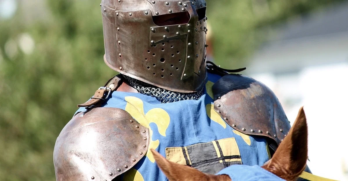 N'oublions pas la monture du chevalier. Là encore, il s'agit d'un bon emplacement pour afficher des armoiries. Les chevaliers portaient parfois un caparaçon en tissu qui pouvait également envelopper la tête et les oreilles de l'animal. Il existait d'autres options, qui protégeaient mieux le cheval: une cotte de mailles en deux parties (l'une pour l'avant et l'autre accrochée derrière la selle), un casque rembourré (têtière), un couvre-chef en plaques (chanfrein) ou une plaque d'armure en métal ou en cuir bouilli pour protéger le poitrail (pectoral).