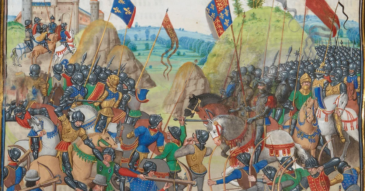 Juste avant le début de la bataille, le roi anglais prononça un discours enflammé à ses troupes, du moins selon le chroniqueur médiéval Jean Froissart (c. 1337 - c.1405) :