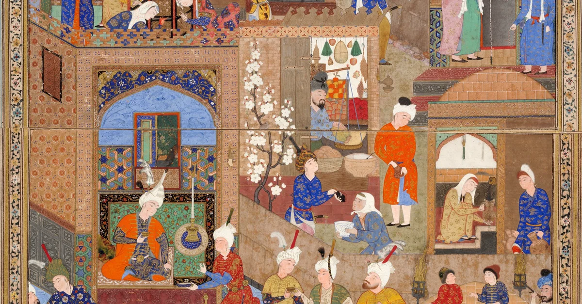 La peinture miniature persane est un art de cour et d'aristocratie, avec des couleurs exquises, des compositions équilibrées et une attention méticuleuse aux détails. Bien que ses origines soient difficiles à retracer, beaucoup considèrent l'Arzhang, le livre illustré du prophète Mani (fondateur du manichéisme et lui-même artiste) du IIIe siècle de notre ère, sous l'empire sassanide, comme le fondement des écoles de peinture persanes.