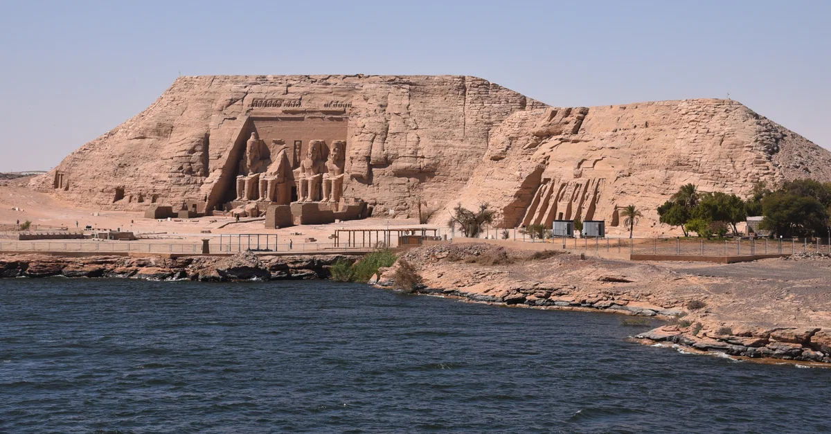 La lente approche par bateau d'Abou Simbel est tout à fait spectaculaire. Au fur et à mesure que nous nous rapprochions, les temples se révélaient à nous dans toute leur imposante beauté. La plupart des visiteurs empruntent le bus de 290 kilomètres qui relie Assouan à Abou Simbel à travers le désert ou arrivent à l'aéroport spécialement construit, mais ils approchent Abou Simbel par l'arrière. À bord de notre beau navire, nous avons eu la chance de pouvoir admirer les deux temples de face, depuis les eaux qui menaçaient autrefois de les détruire.
