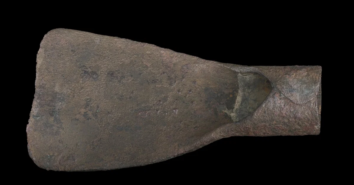14. Sa houe, dont la lame était attachée avec une corde, était ornée d'agent et d'or,