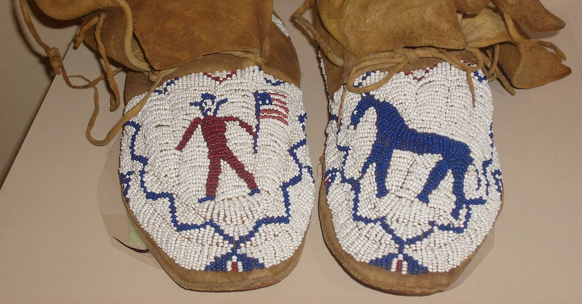 Le mocassin est la chaussure la plus communément associée aux nations amérindiennes d'Amérique du Nord. Son nom vient de mekezin ou makasin - le mot algonquin pour "chaussure" - et il était fait de peaux d'ours, de castor, de cerf ou d'élan, coupées à la taille et cousues ensemble, la peau de cerf étant la plus populaire. La forme la plus courante du mocassin est la chaussure, mais les bottes de cheville, de mollet ou de genou étaient fabriquées selon la même technique et les chaussures comme les bottes étaient généralement ornées de perles ou de franges. Les mocassins étaient parfois enduits de graisse animale pour les imperméabiliser, mais ils pouvaient être laissés tels quels si utilisés exclusivement à l'intérieur, comme les pantoufles de l'ère moderne. Le mocassin devint populaire parmi les commerçants européens, à commencer par les Français dans la région du Canada actuel. Ils étaient connus sous le nom de "chaussures indiennes" et faisaient souvent l'objet d'échanges commerciaux.