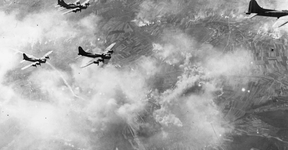 Le B-17 Flying-fortress était le meilleur bombardier dont disposaient les États-Unis sur le théâtre européen de la Seconde Guerre mondiale. Il était piloté par la huitième armée de l'air américaine (USAAF), basée en Grande-Bretagne. Doté de quatre moteurs, le B-17 était capable de transporter une charge de bombes de 2 722 kg (6 000 lb) jusqu'à une distance de 3 220 km (2 000 miles). L'avion avait un équipage de dix hommes et était équipé de 13 mitrailleuses d'un calibre de 0,50 pouce (12,7 mm) pouvant tirer 800 coups par minute. C'est cette quantité inhabituelle d'armes défensives qui conduisit les commandants de l'USAAF à penser qu'ils pouvaient utiliser des bombardiers en plein jour et éviter les pertes subies par la RAF. L'autre bombardier principal de l'USAAF était le B-24 Liberator, moins bien armé mais qui avait fait ses preuves.