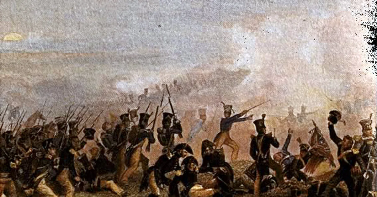 Il est dix heures. La lune est couchée... rarement à plus de vingt mètres l'une de l'autre, les lignes opposées aperçoivent de temps à autre le visage de leurs ennemis et les boutons de leurs manteaux dans l'éclair des explosions de mousquets. Drummond, froid comme la glace, refuse de céder un pouce. Les hommes de Ripley [...] entendent le cri de ralliement du commandant britannique : "Tenez bon, mes braves!". Ripley ordonne à ses hommes de maintenir le feu jusqu'à ce que leurs baïonnettes ne touchent celles de leurs adversaires, afin qu'ils puissent utiliser les éclairs des mousquets pour viser.