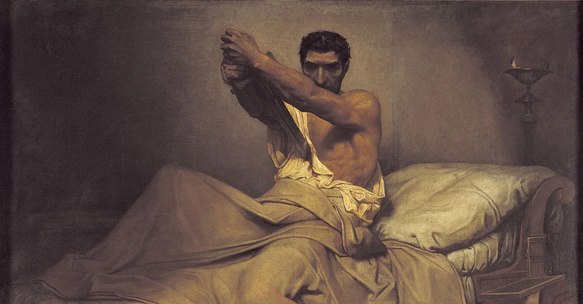 L'un des suicides les plus célèbres de la fin de la République romaine est celui du stoïcien Caton le Jeune (95-46 av. J.-C.). Il était l'un des sénateurs les plus influents de l'opposition à Jules César (100-44 av. J.-C.). Lorsque César vainquit les dernières forces de la République à Utique, en Afrique du Nord, il offrit l'amnistie à Caton, comme il le fit pour nombre de ses anciens ennemis.
