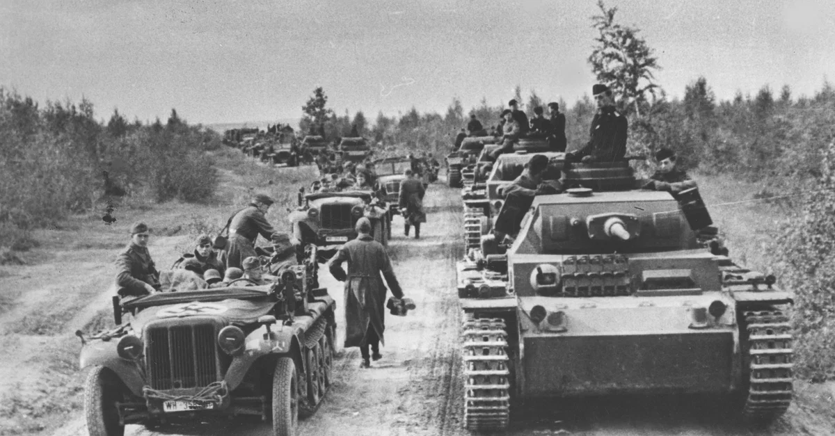 Adolf Hitler (1889-1945), le chef de l'Allemagne nazie, était convaincu, après les rapides victoires de l'Axe dans les Pays-Bas et en France en 1940, qu'il pourrait gagner encore plus de territoire et de ressources en attaquant l'URSS. Hitler, comme il l'avait toujours promis, était déterminé à trouver le Lebensraum ("espace vital" ou biotope) pour le peuple allemand, c'est-à-dire de nouvelles terres à l'est où il pourrait trouver des ressources et prospérer. Hitler était convaincu qu'en détruisant l'Armée rouge et en prenant des villes prestigieuses comme Leningrad (Saint-Pétersbourg) et Moscou, l'URSS s'effondrerait. L'opération Barbarossa, nom de code de l'attaque contre l'URSS, fut donc lancée le 22 juin 1941.