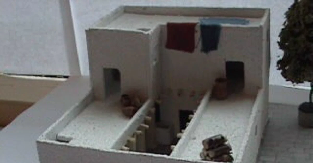 La disposition typique de la maison à quatre pièces consistait en un plan rectiligne divisé en trois, quatre ou plusieurs espaces/pièces. Un espace central plus grand était séparé par une ou deux rangées de piliers en pierre, avec une entrée qui menait d'une cour extérieure à l'espace central. Des pièces supplémentaires pouvaient être ajoutées ou subdivisées, mais le plan de base suivait la description ci-dessus. Une citerne profonde était souvent incluse dans la cour, tout comme des fours en argile ou en briques de boue et des foyers pour la cuisine. Cela suggère que la majorité des tâches domestiques étaient effectuées à l'extérieur, d'autant plus que les pièces latérales étaient souvent utilisées pour le bétail, comme le suggère l'existence de sols pavés, ou comme espace de stockage. Des structures à un, deux et peut-être trois étages ont été mises au jour, ce qui corrobore la théorie selon laquelle les habitants dormaient et mangeaient à l'étage supérieur, séparés des animaux.