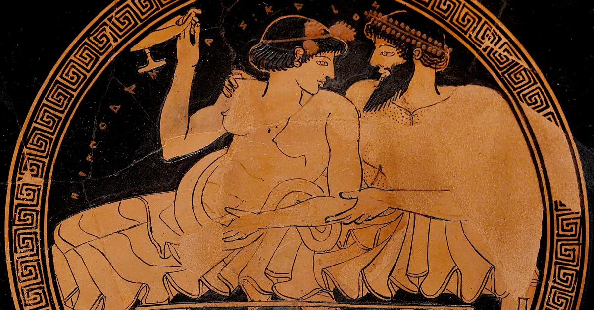 Un simposio poteva essere molto informale ed essere poco più di una semplice festa, a volte poteva essere molto formale, altre volte poteva finire in un'orgia. Di sicuro era, una volta che veniva portato via il cibo, un'occasione per gli uomini di discutere degli eventi del giorno e di argomenti politici, filosofici, religiosi e artistici. Uno di loro poteva dare il via alla discussione, non necessariamente l'ospite ma qualcuno scelto dal gruppo. Gli ospiti raccontavano una storia, recitavano un poema, suonavano la lira, potevano cantare una stessa canzone in cui ognuno di loro interpretava a turno alcuni versi. Potevano svolgersi giochi, anche, come lanciare i residui sul fondo del kylix contro un bersaglio, ad esempio un'anfora. In questa atmosfera conviviale entravano le etere, le uniche donne che erano ammesse a partecipare.