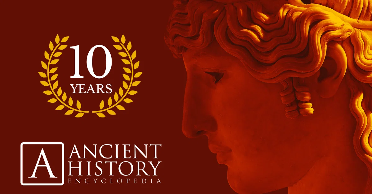A Ancient History Encyclopedia (AHE - Enciclopédia de História Antiga) acaba de completar dez anos! A 25 de agosto de 2009, lançamos oficialmente o sítio da Ancient History Encyclopedia, sob ancientopedia.com (o primeiro domínio) nos mecanismos de busca. Percorremos um longo caminho e foi uma jornada incrível para todos os envolvidos. Parabéns à equipa e obrigado a todos os nossos membros, doadores, apoiadores e leitores!