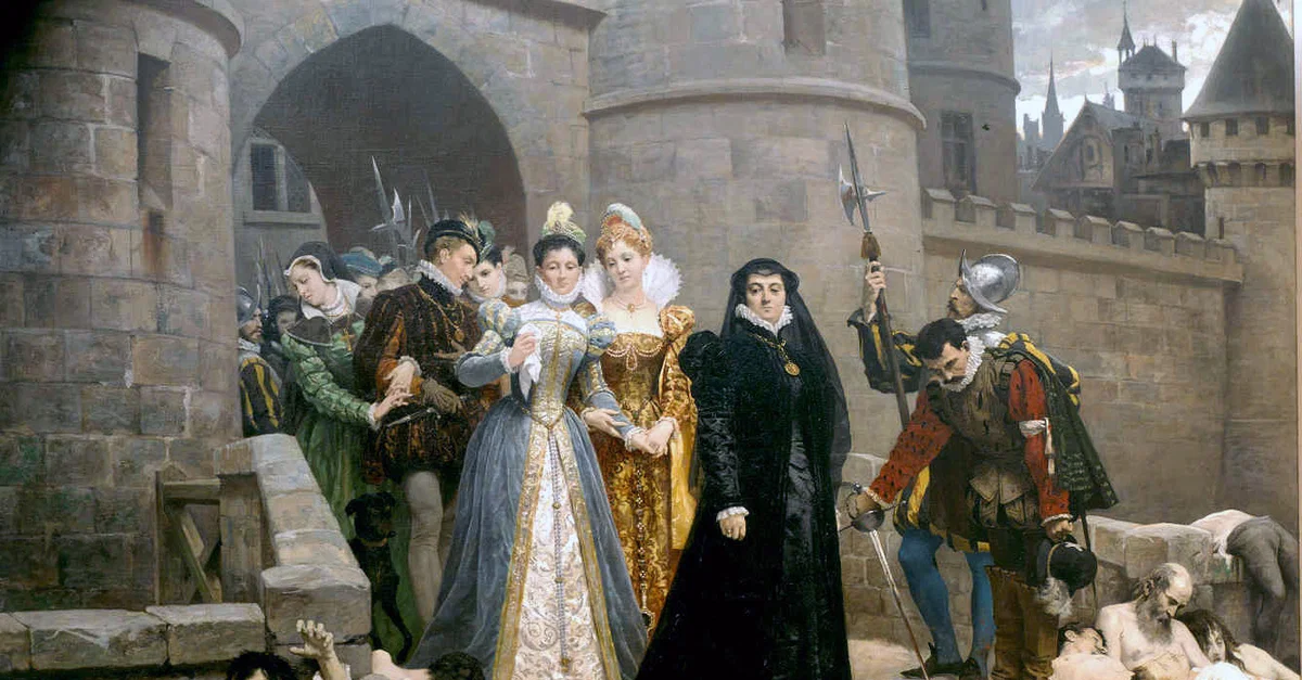 Margarida de Valois (1553-1615) foi filha de Catarina de Médici (1519-1589) e do Rei Henrique II da França (1547-1559). Prometida a Henrique de Navarra (1553-1610; mais tarde, este veio a se tornar o Rei Henrique IV da França) ela se uniu ao noivo num casamento arranjado cujo propósito era encorajar a reconciliação entre católicos e protestantes (huguenotes) na França, os quais vinham se combatendo em conflito armado desde 1562. O casamento, orquestrado pela católica Catarina de Médici e a mãe de Henrique, a Rainha protestante Joana de Albret, foi concebido como um grande evento para a celebração da tolerância religiosa através da união entre uma noiva católica e um noivo protestante.