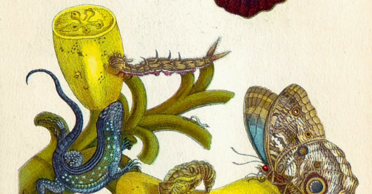 Maria Sibylla Merian (1647-1717) conquistou renome no campo da história natural, particularmente como ilustradora. Ela provinha de uma família de Frankfurt com tradição nesta área, incluindo editores e artistas. Após se mudar para Nuremberg, publicou em 1675 seu primeiro livro, na verdade três coleções de ilustrações impressas a partir de placas de cobre. Os livros tinham como tema principal as flores, fornecendo modelos realistas prontos para cópia por outros artistas e bordadores. Em 1679, Merian publicou outra coleção de ilustrações, Lagartas, desta vez mostrando os vários estágios de insetos que observou. As ilustrações apareciam em composições que reuniam um grande número de exemplares na mesma cena natural. Merian não somente desenhava, mas também criava e estudava os ciclos de vida de muitos tipos de insetos.