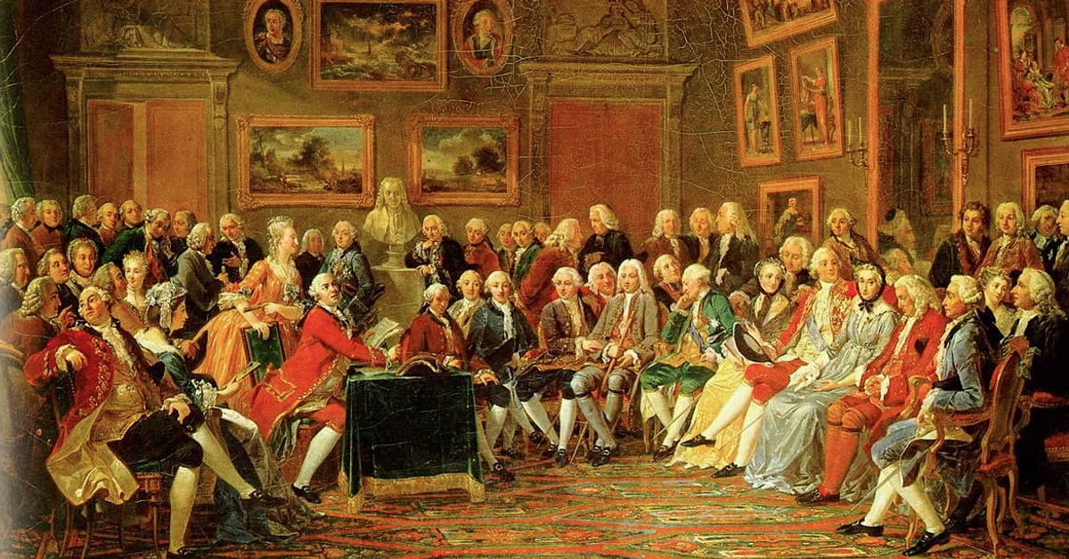 Os salões começaram a se popularizar em Paris no início do século XVII, mas o termo “salão” só passou a ser empregado no século XVIII, e não deve ser confundido com as exposições públicas de arte parisienses da mesma época, que também recebiam esse nome. Esses encontros eram geralmente organizados por mulheres da aristocracia e ocorriam semanalmente, com acesso restrito a convidados. Realizados em ambientes elegantes e reservados, proporcionavam um espaço propício à socialização e às conversas em pequenos grupos. O historiador W. E. Burns explica que “a missão original era o refinamento dos modos, da fala e da literatura” (p. 285). Com o tempo, porém, a reflexão sobre as artes, a filosofia e as ciências passou a desempenhar um papel importante nesses encontros. Apesar de muitas vezes abordarem temas intelectuais complexos, os salões mantinham o caráter informal. Além da comida servida, os convidados podiam assistir a apresentações musicais realizadas por músicos renomados ou promissores. Escritores eram incentivados a ler trechos de suas obras mais recentes. Também podia haver danças, pequenas encenações teatrais, debates intelectuais, imitações e jogos de cartas ou de salão. Outros convidados vinham da alta sociedade, e embora alguns anfitriões separassem os presentes por classe social, seja em salas distintas ou em encontros alternados, havia também quem permitisse a mistura entre as classes. As mulheres também eram convidadas, o que contribuía ainda mais para fazer dos salões uma verdadeira miscelânea de gênero, status social e talento.