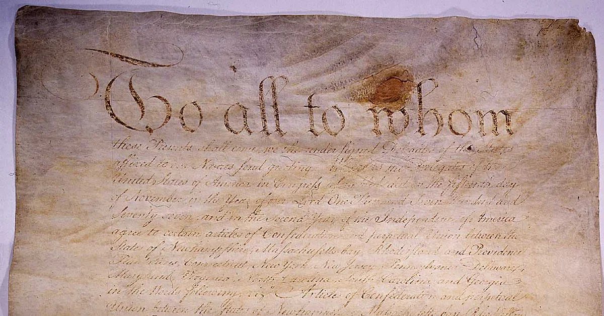 Тринадцать авторов Статей тщательно продумали роль, которую Конгресс будет играть в новой конфедерации. Во времена, когда многие американцы презирали британский парламент за его коррумпированность и тиранию, авторы не хотели наделять центральное правительство, которое в один прекрасный день могло стать столь же деспотичным, слишком большими полномочиями. Вместо этого они предложили создать центральное правительство, подчиненное отдельным штатам, утверждая, что такая система является лучшим способом защитить свободы американских граждан. После долгих дебатов Конгресс принял Статьи Конфедерации 15 ноября 1777 г., прежде чем разослать его штатам на ратификацию. Виргиния стала первым штатом, ратифицировавшим Статьи 16 декабря 1777 г. 14 месяцев спустя Статьи были ратифицированы всеми штатами, за исключением Мэриленда, который продолжал упорно сопротивляться. Поскольку для вступления в силу Статей требовалось согласие всех тринадцати штатов, процесс создания конфедерации зашел в тупик.