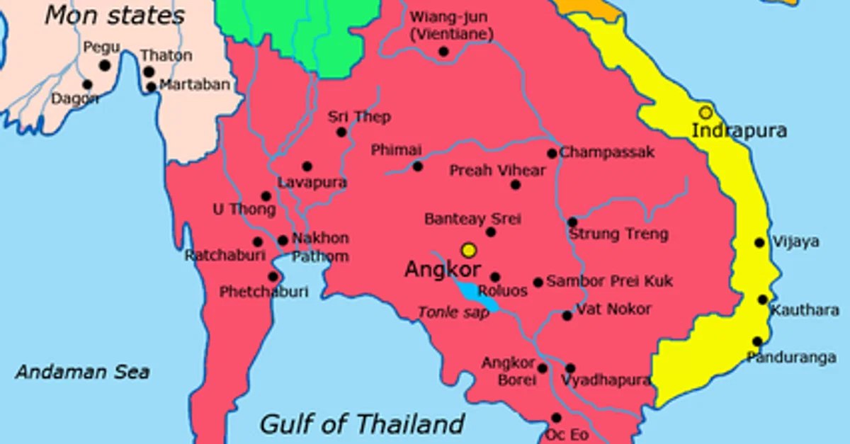 MS 7. yüzyıla gelindiğinde, Khmer halkı, deltadan kabaca modern Kamboçya-Laos sınırına kadar Mekong nehri boyunca - dünyanın yedinci en uzun nehri - ve bu nehir ile batıda büyük Tonle Sap gölü arasındaki bölgede ve batıda Tonle Sap nehri boyunca uzanan alana (gölden denize akar ve deltada Mekong'a katılır) yerleştiler. Birbirine karşı sürekli savaş halinde olan birçok krallık vardı ve bu alt kıta ile uzun süredir kurulmuş deniz ticaret yolları nedeniyle Hindistan'dan sanat vekültür alanında büyük ölçüde etkilendi.