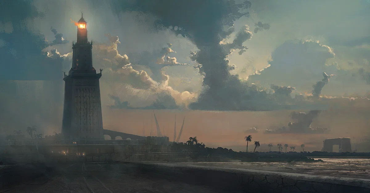 M.Ö. 300 civarında I. Ptolemaios Soter (hükümdarlık dönemi M.Ö. 323 - 282) gemilere rehberlik etmesi ve gücünün ile ihtişamının daimi bir hatırası olması amacıyla İskenderiye'ye muazzam büyüklükte bir deniz feneri inşa ettirmiştir. Söz konusu bu dev proje yaklaşık 20 yıl sonra oğlu ve halefi II. Ptolemaios (M.Ö. 285-246) öncülüğünde tamamlanmıştır. Bu tarihi yapı, aralarında Büyük İskender'in mezarı, Müze (ali̇mler adina bi̇r kurum), ''Serapeum Tapınağı'' ve görkemli bir kütüphanenin de bulunduğu bu muhteşem kentte (İskenderiye'de) görülebilecekler listesini daha da etkileyici kılmıştır.