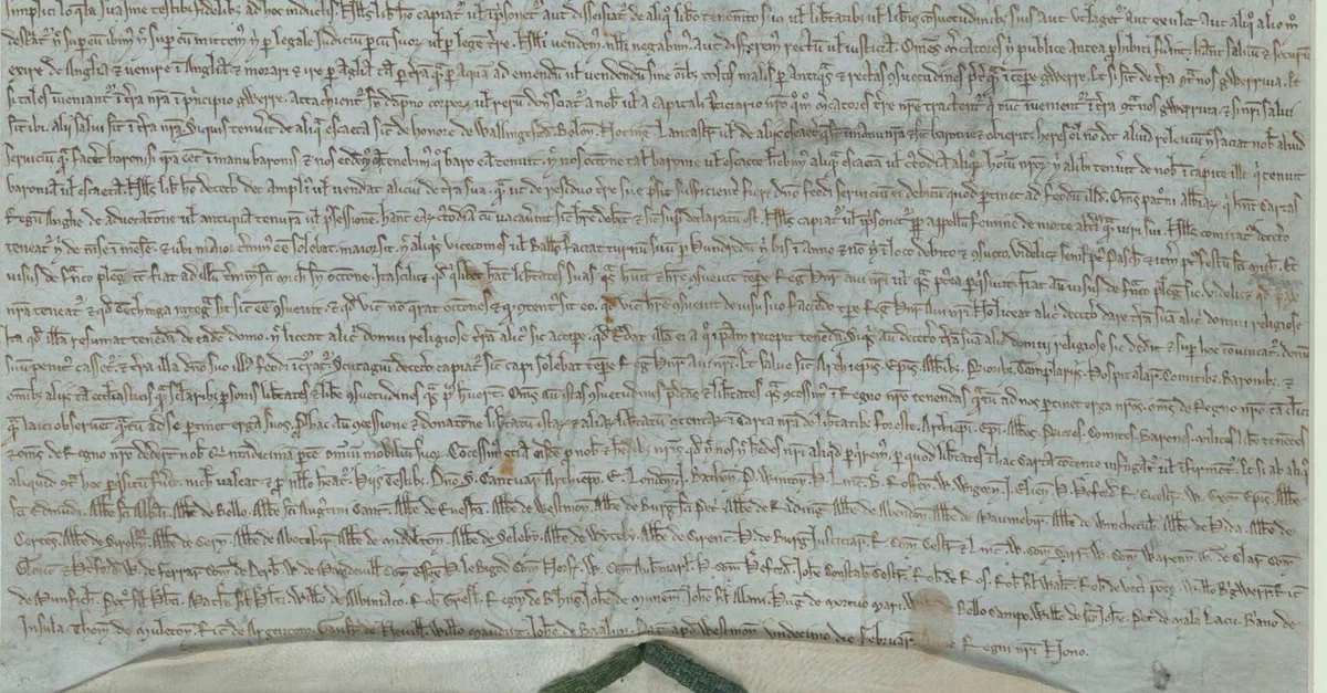 Magna Carta, Haziran 1215’te Londra yakınlarındaki Runnymede’de Kral John tarafından imzalanıp mühürlendi. Belge, özellikle son birkaç on yılda kontrolsüz şekilde artan kraliyet yetkilerini (kralın otoritesini temsil eden şerifler gibi görevliler dahil) sınırlamayı amaçlıyordu.